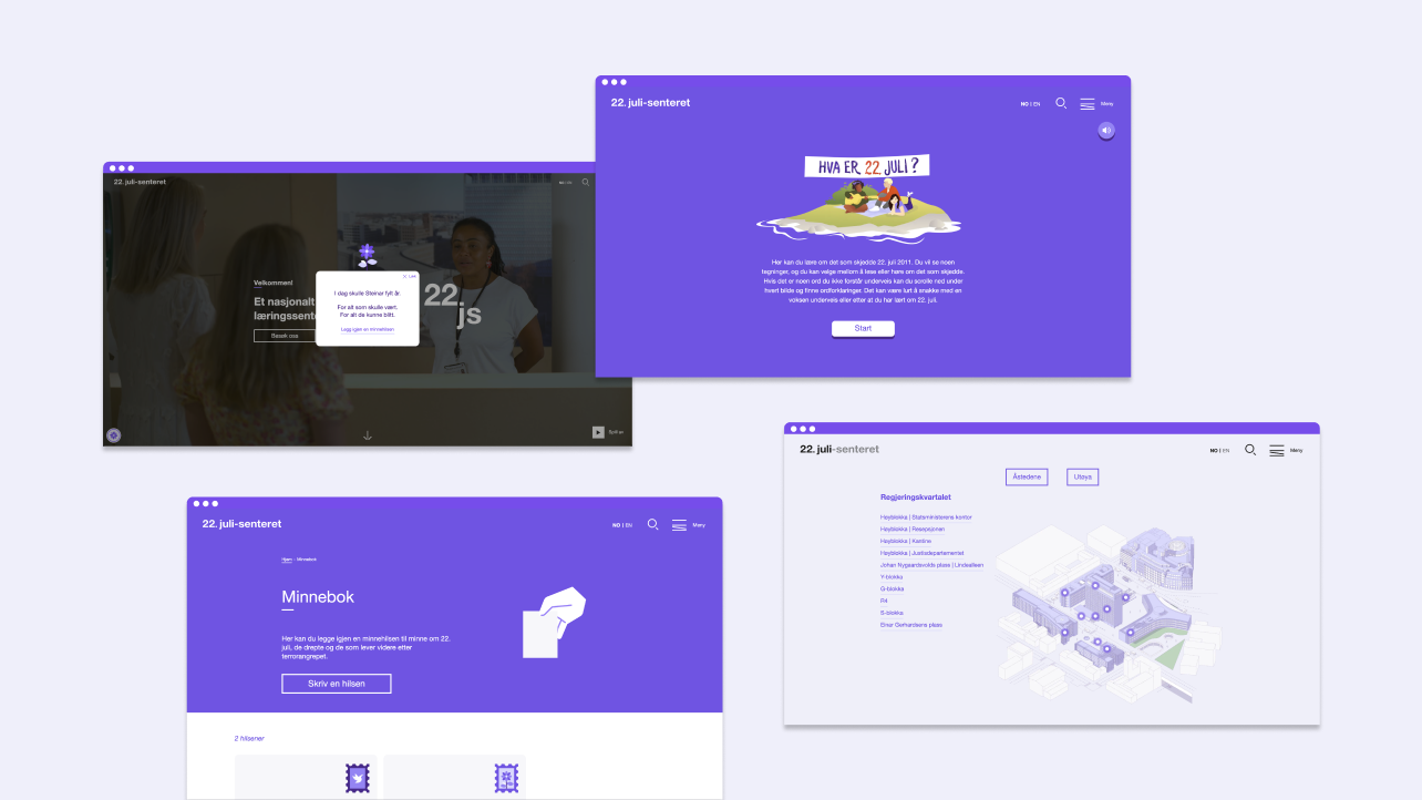 22. juli-senteret lanserte nye nettsider, utviklet av Knowit Experience, i november 2022. Gjennom 2023 har vi videreutviklet nettsidene og er stolte av å presentere nye digitale læringsressurser og andre elementer for 22. juli-senteret.